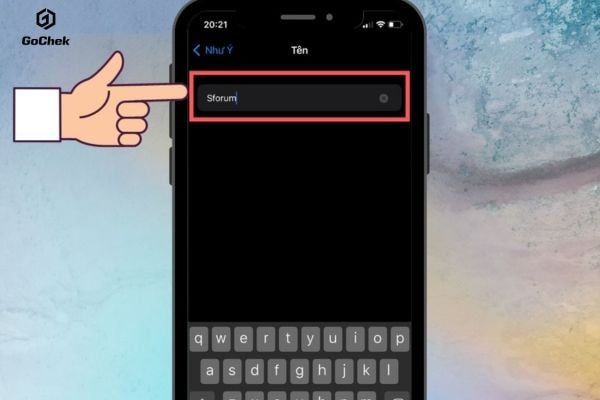 Bạn xóa bỏ tên mặc định ban đầu bằng cách nhấn vào dấu nhân trong khung nhập liệu. Hãy nhập tên mới theo sở thích hoặc biệt danh cá nhân của bạn. Cuối cùng bạn nhấn nút Xong trên bàn phím để hệ thống ghi nhận thông tin mới.