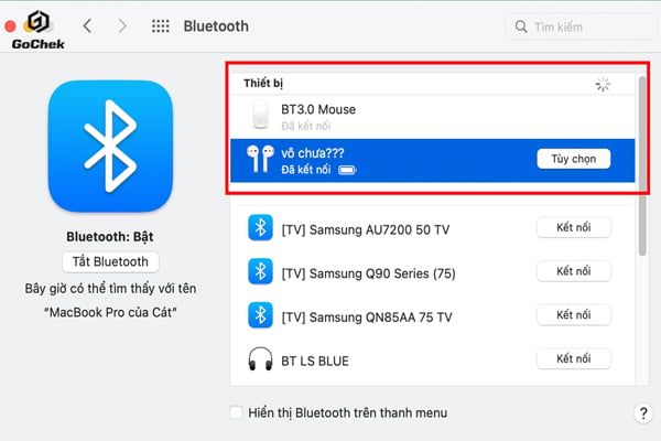 Bước 3: Chờ thiết bị Mac quét và hiển thị danh sách các thiết bị Bluetooth khả dụng trong vùng phủ sóng.