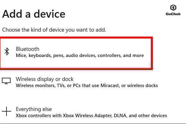 Bước 6: Trong cửa sổ hiện ra, chọn “Bluetooth” để laptop bắt đầu tìm kiếm các thiết bị khả dụng trong phạm vi.