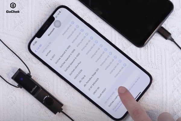 Để kết nối, bật nguồn micro và giữ nút trong vài giây cho đến khi đèn báo chuyển sang chế độ nhấp nháy. Trên điện thoại, bật Bluetooth, tìm thiết bị có tên “GoChek LivePro G1” và chọn ghép đôi.