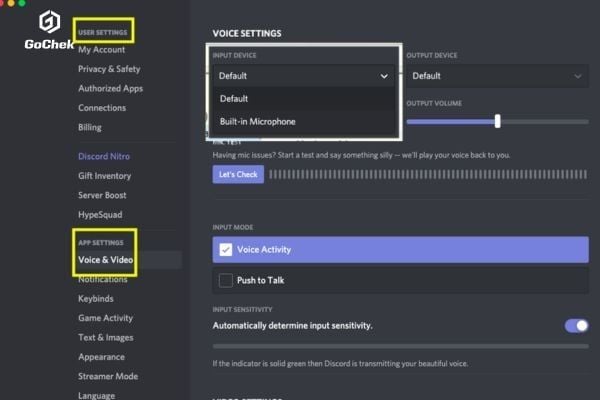 Discord cho phép người dùng tùy chỉnh sâu về thiết bị đầu vào và đầu ra trong mục Voice & Video. Lỗi xảy ra khi thiết bị mặc định (Default) của hệ thống không trùng khớp với microphone mà người dùng đang sử dụng thực tế.