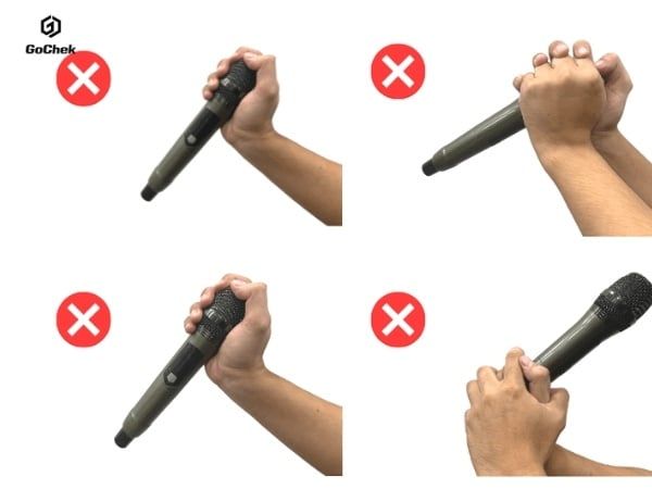 - Cầm micro đúng cách, không che anten hoặc chắn phần đầu thu của micro không dây.