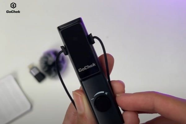 Trên thân micro, GoChek chỉ trang bị duy nhất một nút điều khiển xoay đa năng kiêm nút nguồn. Thiết kế này giúp người dùng thao tác nhanh, chuyển đổi linh hoạt giữa các chế độ điều chỉnh âm vang, âm lượng micro và chất giọng chỉ bằng một thao tác xoay hoặc nhấn. Đèn LED báo hiệu hai màu (xanh – đỏ) giúp nhận biết trạng thái bật/tắt trực quan. Dây kết nối dài 1,2m với đầu Type-C và đầu chuyển Lightning cho phép sử dụng linh hoạt trên nhiều thiết bị khác nhau, từ smartphone đến tablet.