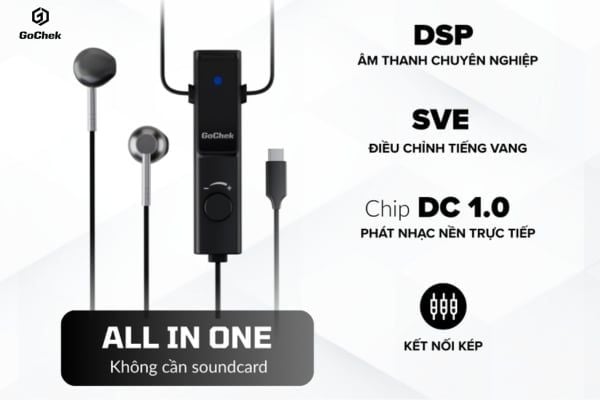 GoChek LivePro G1 đi kèm tai nghe kiểm âm chuyên dụng, hỗ trợ người dùng theo dõi giọng hát trong thời gian thực. Bên cạnh đó, mic còn tích hợp hiệu ứng echo và reverb ngay trên thân, dễ dàng điều chỉnh chỉ với một thao tác đơn giản.