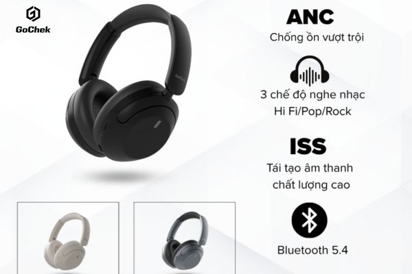 Kết nối Bluetooth 5.4 giúp truyền tải ổn định, giảm độ trễ và nhiễu tín hiệu. Thiết kế chụp tai gọn nhẹ, đệm mềm mại, đảm bảo sự thoải mái trong thời gian dài. Tích hợp công nghệ chống ồn chủ động ANC giúp loại bỏ tạp âm xung quanh, đắm chìm hoàn toàn vào âm nhạc hoặc game. Thời gian nghe nhạc lên đến 120 giờ, sạc đầy chỉ trong 4 giờ. Bộ sản phẩm kèm cáp sạc USB Type-C, cáp kết nối phụ trợ, dây audio/mic 3.5mm và túi đựng.