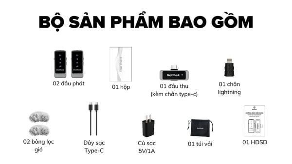 Để tối ưu trải nghiệm sử dụng, bạn có thể tham khảo bộ micro GoChek Ultra S24 có kèm hộp sạc, giúp kéo dài thời gian hoạt động và bảo vệ micro tốt hơn. Hộp sạc không chỉ đóng vai trò lưu trữ micro gọn gàng và kèm đầu chuyển đổi linh hoạt type c, lightning mà còn bộ micro kèm hộp sạc còn hỗ trợ nhiều lần sạc khi bạn di chuyển, đảm bảo micro luôn sẵn sàng sử dụng.